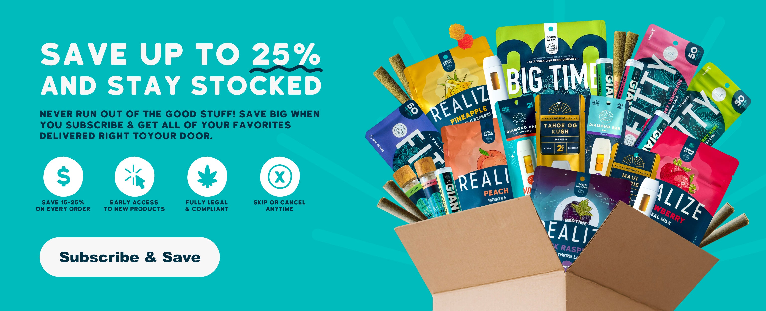 Realize products are well below the legal limit of 0.3% THC making it federally legal to buy and enjoy, so relax, it's legal!